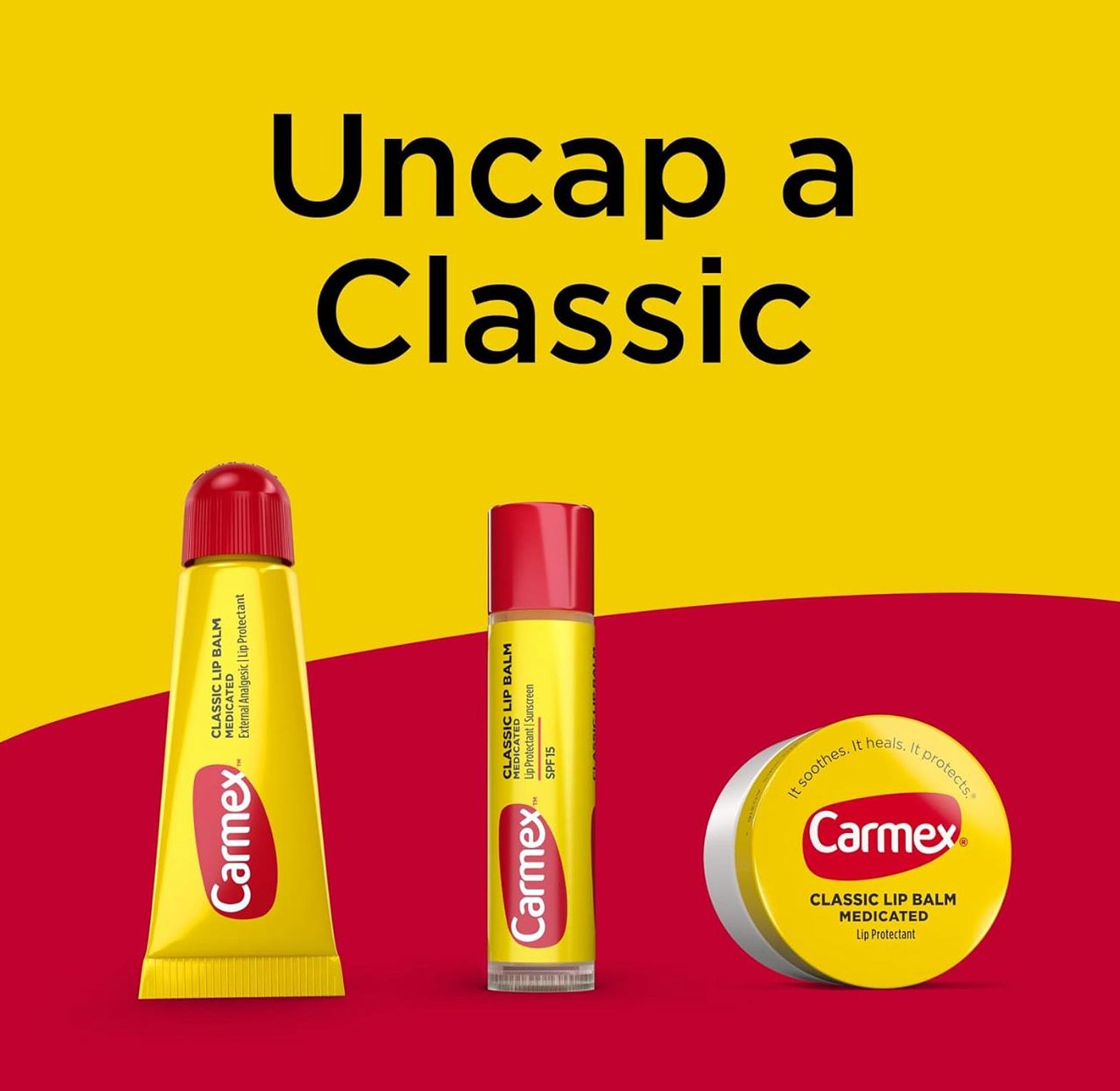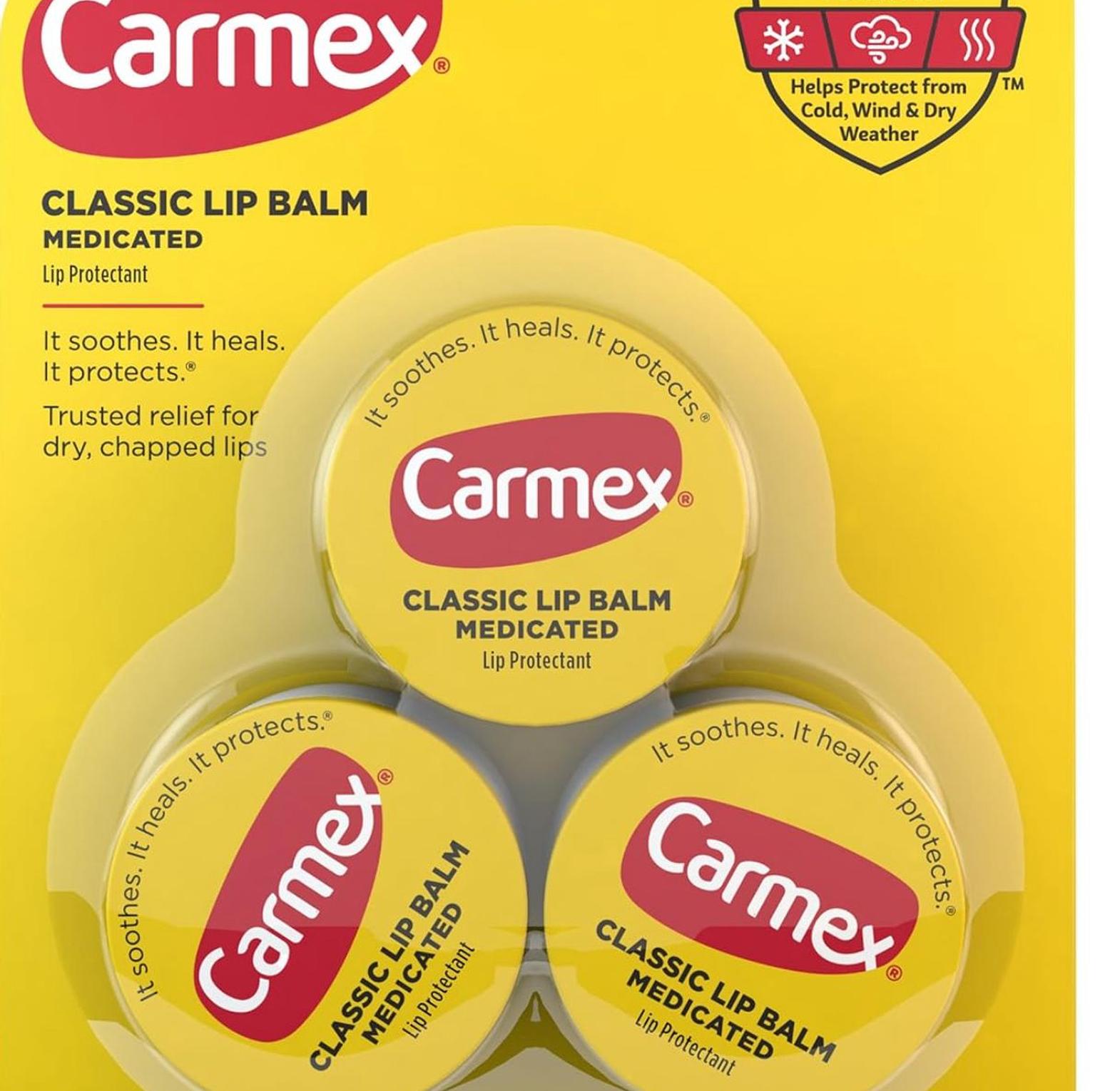 A triple pack of the iconic Carmex Classic Original Jar, offering soothing hydration and protection for dry lips wherever you are, with three jars for lasting convenience.