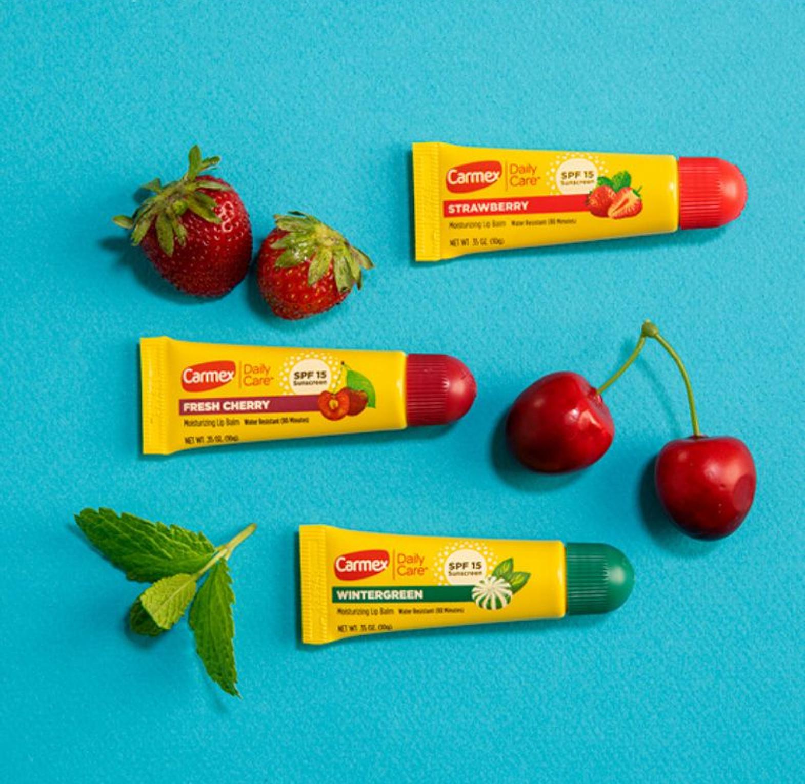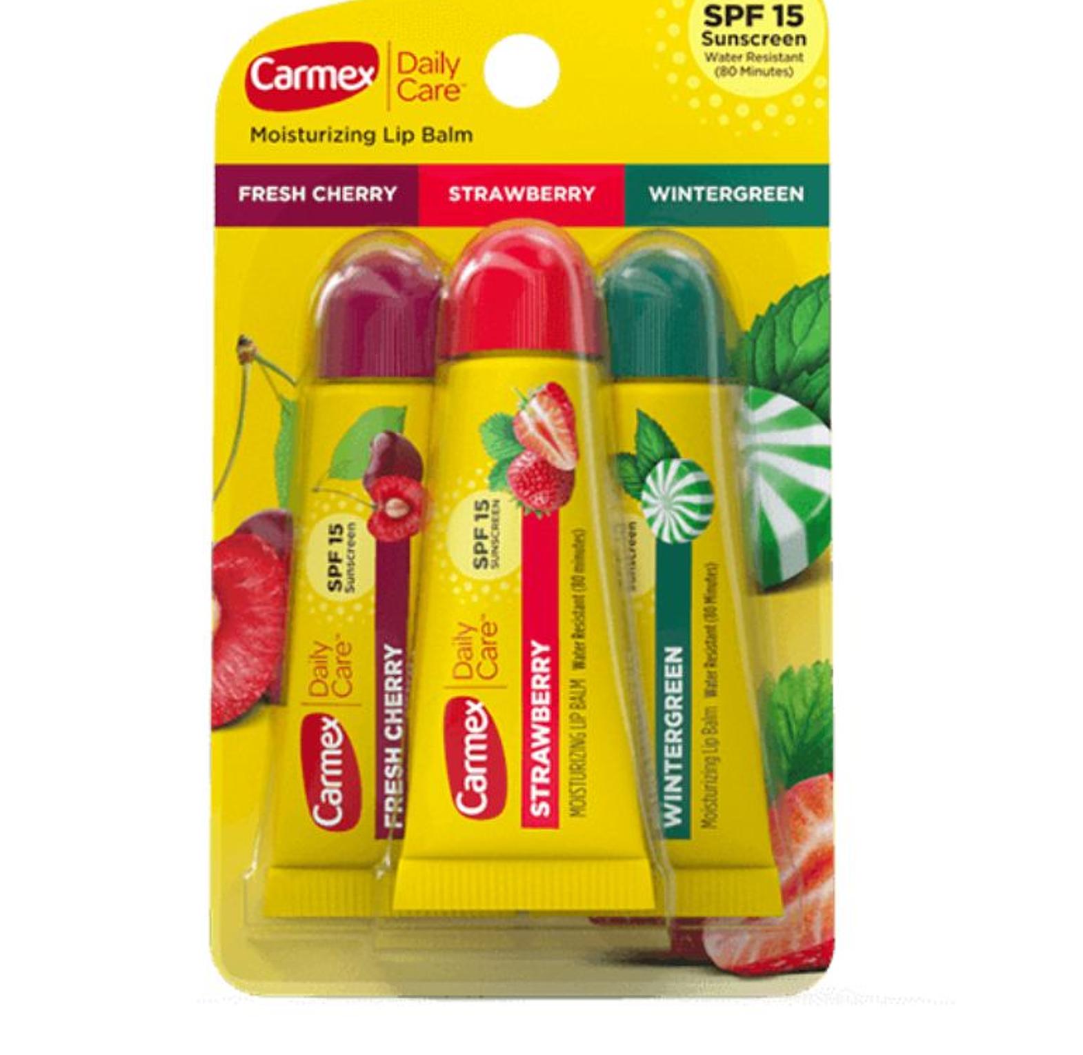 A triple pack of Carmex lip balms with SPF 15, offering soothing hydration, protection, and sun defense for your lips all year long.